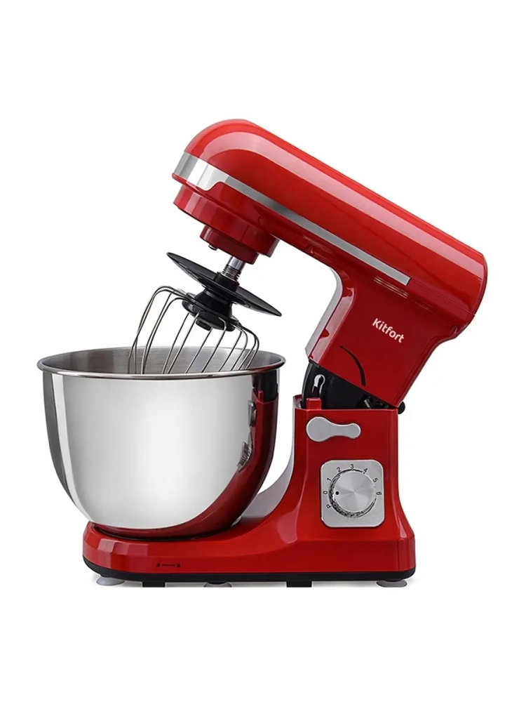 Миксер Kitfort оснащен удобной кнопкой управления, что делает его использование простым и интуитивно понятным. Красная цветовая гамма корпуса добавляет стильный акцент в интерьер вашей кухни. Этот планетарный миксер станет незаменимым помощником для тех, кто ценит качество и функциональность кухонной техники.