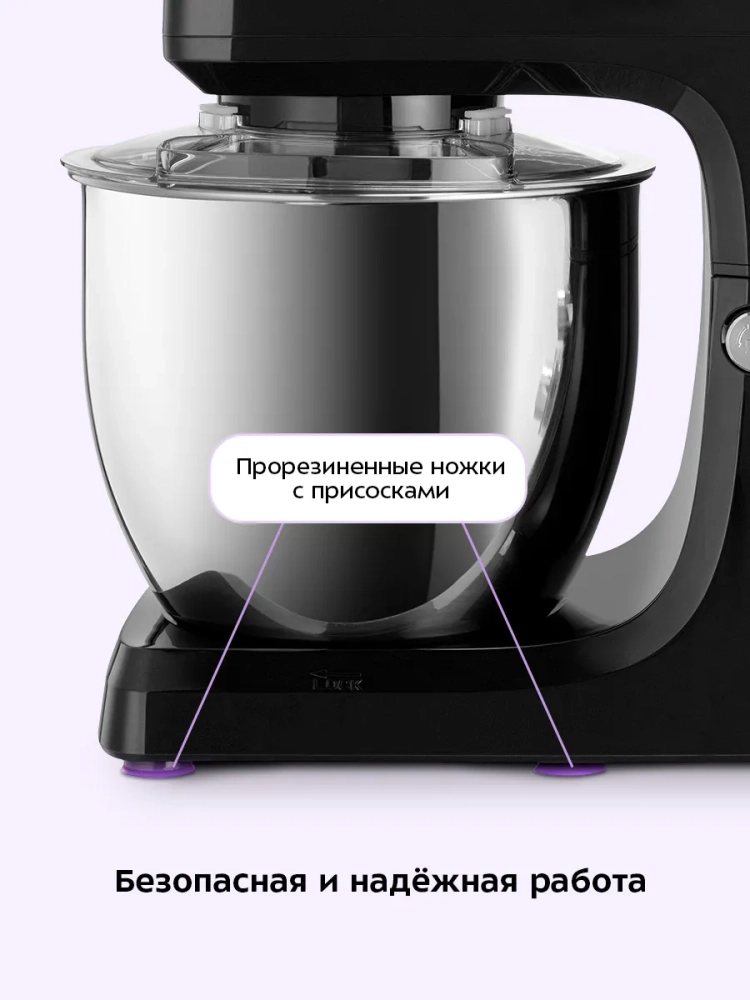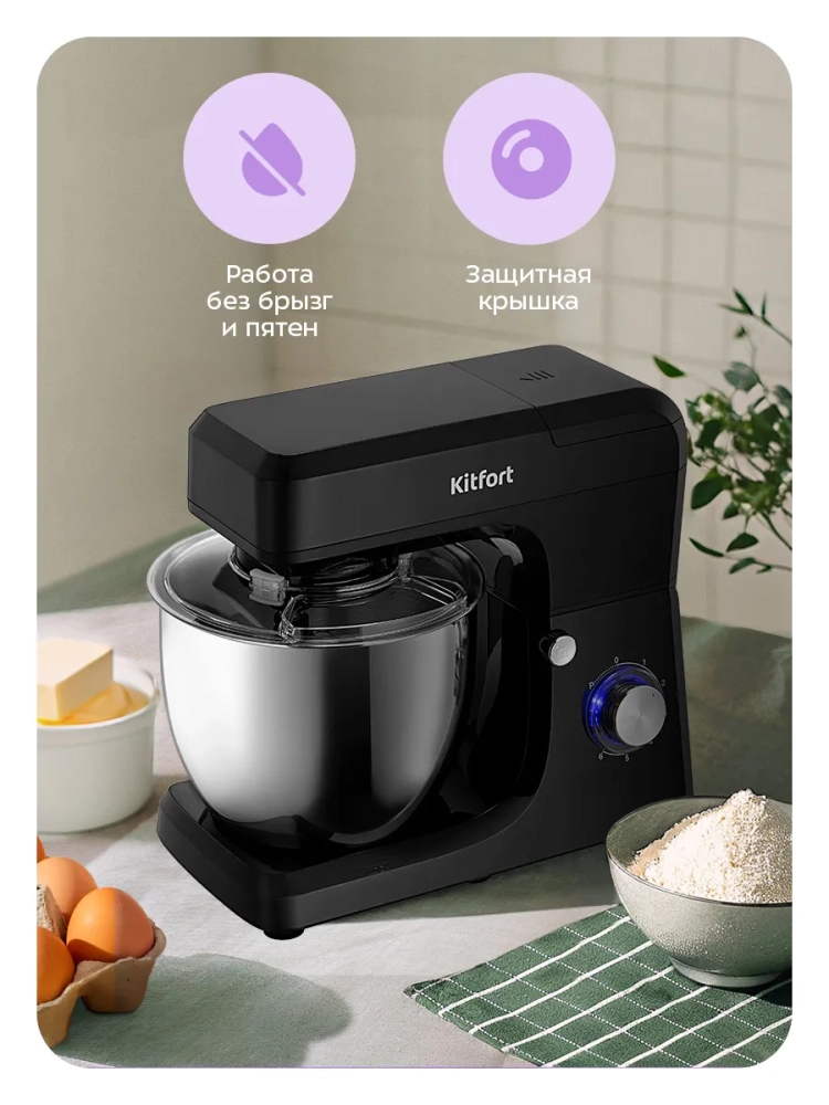 Техника Kitfort отличается надежностью и долговечностью, что делает ее идеальным выбором для тех, кто ценит качество и функциональность. Миксер с чашей объемом 6.5 литров позволяет готовить большие порции, что особенно удобно для семейных обедов или вечеринок. Этот миксер станет незаменимым помощником в приготовлении теста для блинов, замеса хлеба или приготовления мини-коктейлей.