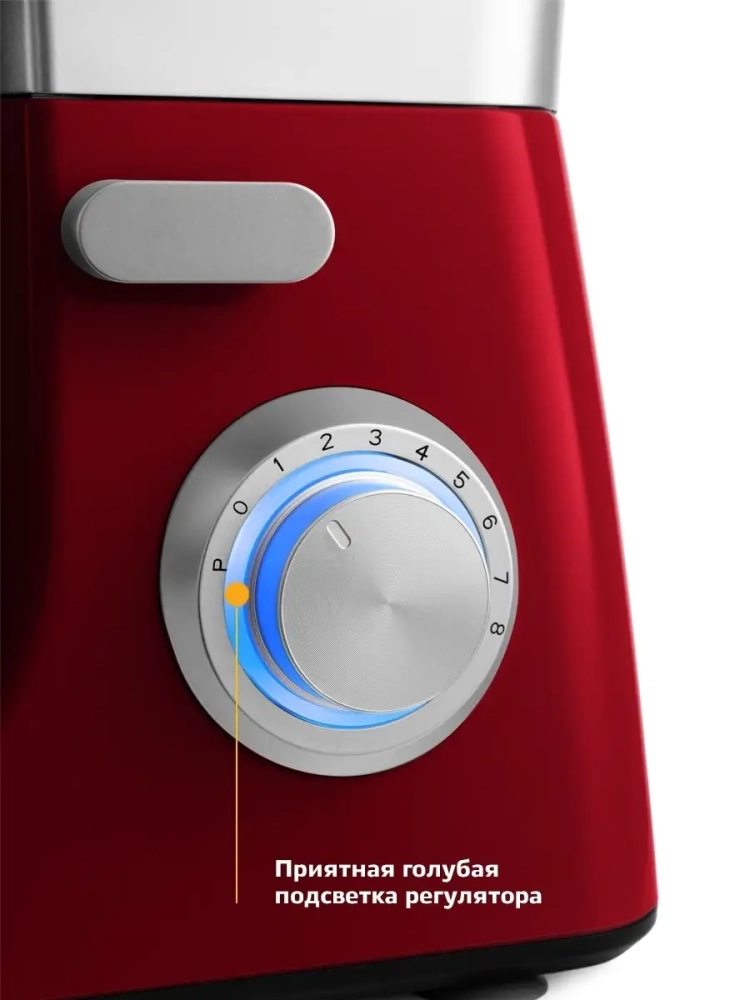 Миксер позволяет плавно регулировать скорость от минимума до максимума. При включении миксера скорость вращения увеличивается постепенно, чтобы предотвратить разбрызгивание ингредиентов.