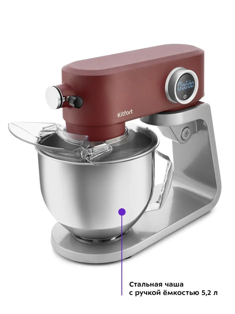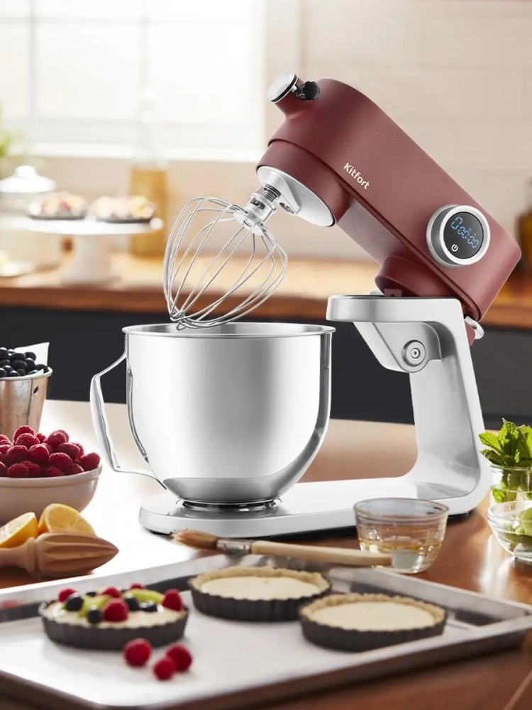 Современный, мощный и очень тихий планетарный миксер Kitfort КТ-1391 поможет вам смешать ингредиенты, взбить яичный белок или сливки, приготовить картофельное пюре, соус, крем, мусс, замесить жидкое тесто для блинов и крутое для пельменей, пирогов.