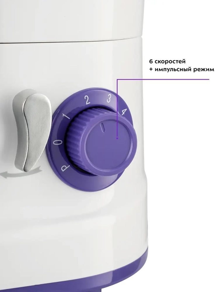 Миксер позволяет легко регулировать скорость от минимума до максимума. 6 скоростей работы позволяют выбирать более подходящий вариант смешивания и взбивания ингредиентов для приготовления разных блюд.