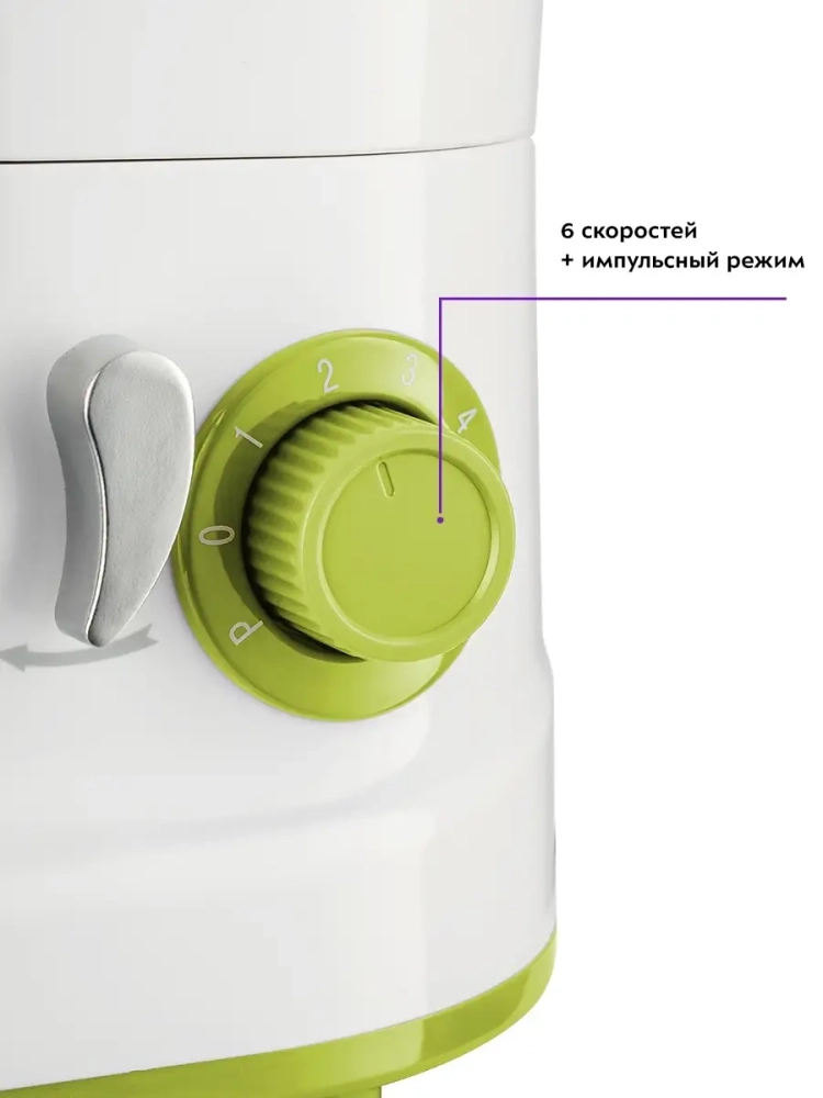 Миксер позволяет легко регулировать скорость от минимума до максимума. 6 скоростей работы позволяют выбирать более подходящий вариант смешивания и взбивания ингредиентов для приготовления разных блюд.