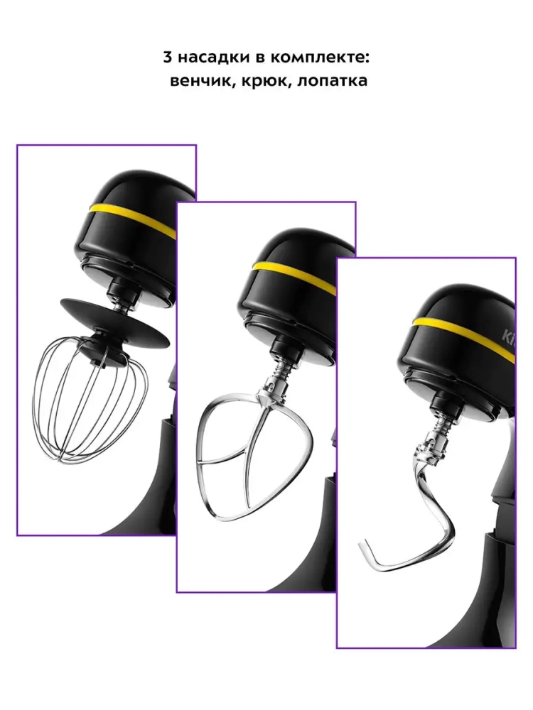 Планетарный миксер Kitfort КТ-3421 поможет вам смешать ингредиенты для любого блюда, взбить яичный белок или сливки, приготовить картофельное пюре, мусс, крем, соус, замесить жидкое тесто для блинов или крутое тесто для пельменей и пирогов.