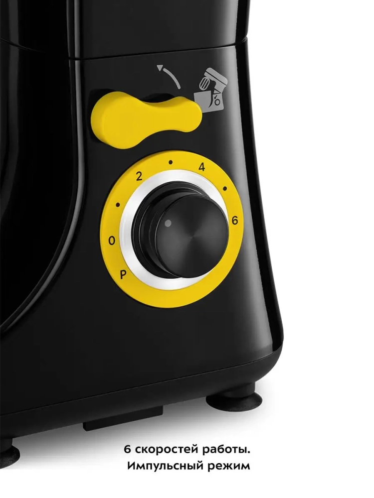 Миксер работает в автоматическом режиме. Вам достаточно только положить ингредиенты в чашу, установить подходящую насадку и включить прибор. Миксер оснащен 6 скоростями смешивания, а также импульсным режимом.