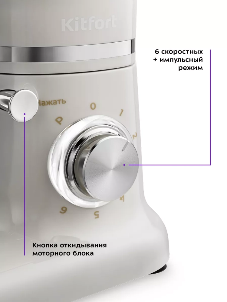 Планетарный миксер Kitfort КТ-3422 поможет вам смешать ингредиенты, взбить яичный белок или сливки, приготовить картофельное пюре, соус, крем, мусс, замесить жидкое тесто для блинов и крутое — для пельменей и пирогов. В комплекте миксера имеется три насадки.