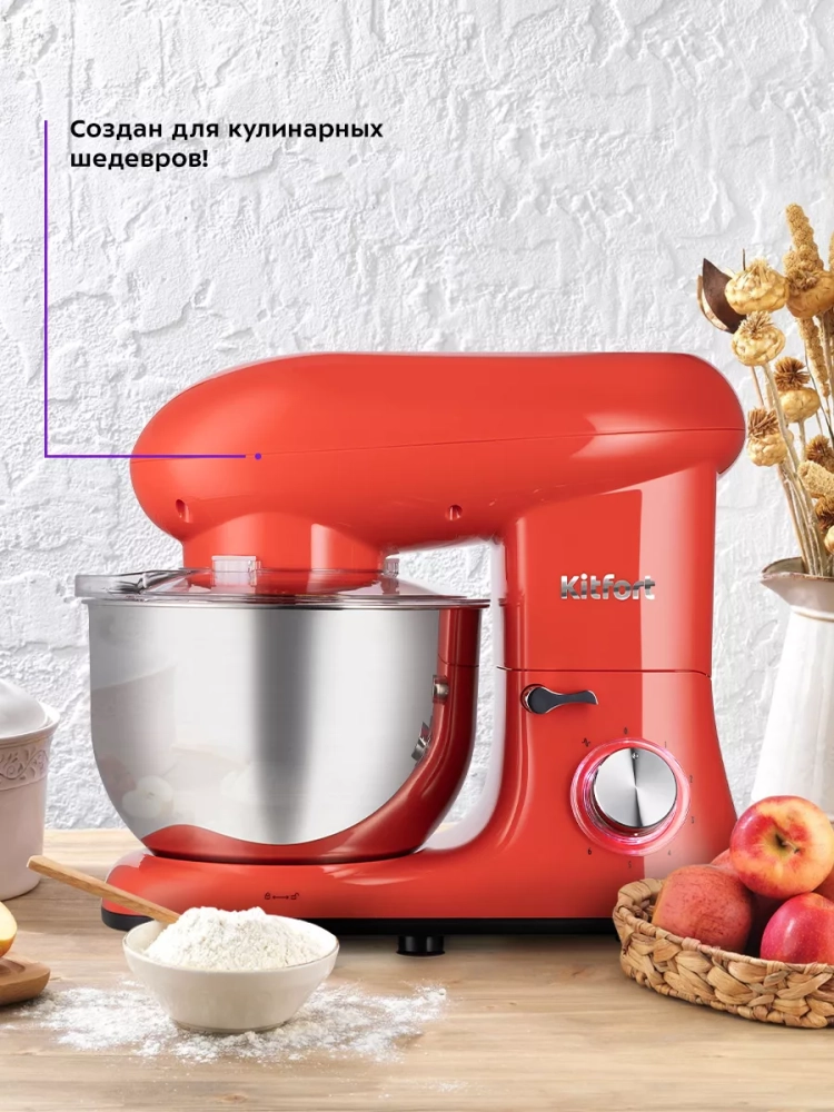 Планетарный миксер Kitfort КТ-3433 поможет вам смешать ингредиенты, взбить яичный белок или сливки, приготовить картофельное пюре, соус, крем, мусс, замесить жидкое тесто для блинов и крутое — для пельменей и пирогов. В комплекте миксера имеется три насадки.