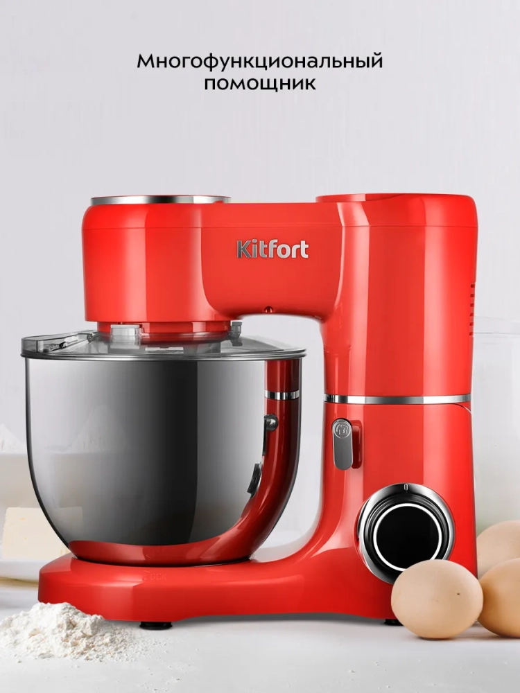 Планетарный миксер Kitfort КТ-4407 поможет вам смешать ингредиенты, взбить яичный белок или сливки, приготовить соус, крем, мусс, замесить жидкое тесто для блинов и крутое — для пельменей и пирогов.