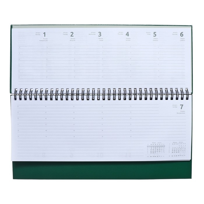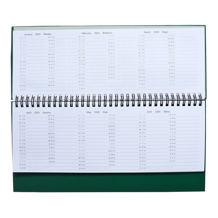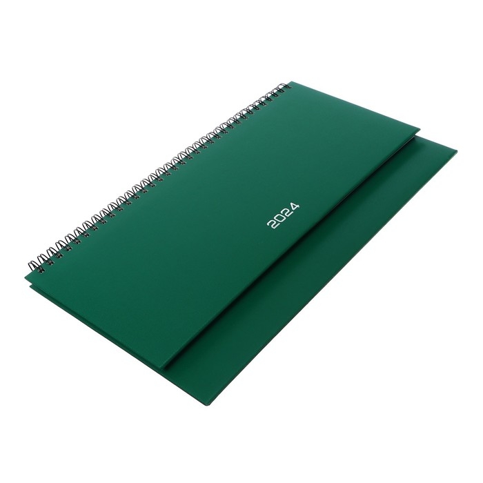 Планинг датированный 2024 года, 294 х 142 мм, 64 листа, на гребне, Attomex.Orion, твёрдая обложка бумвинил, блок 70 г/м2, зелёный