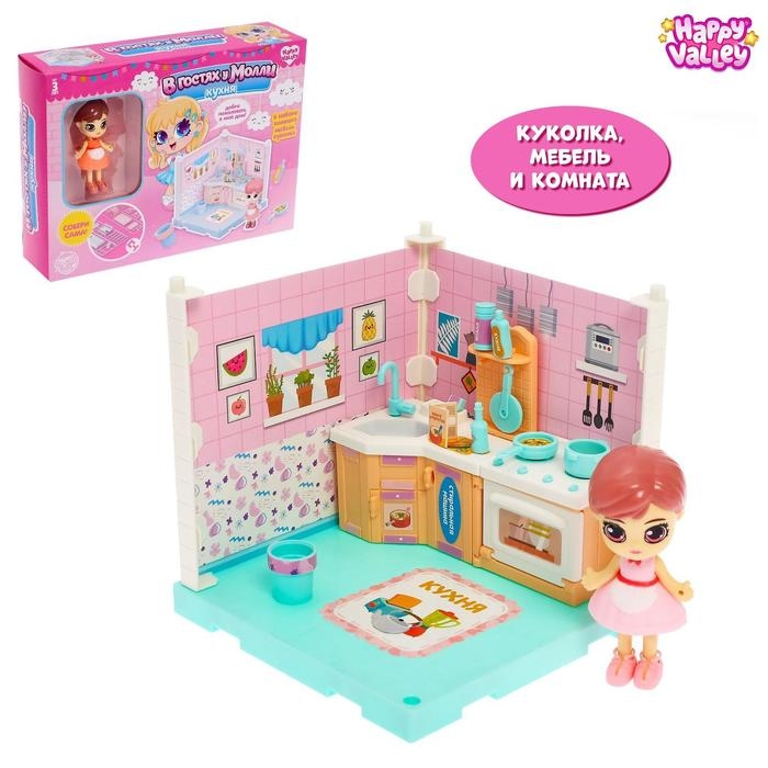 Пластиковый домик для кукол «В гостях у Молли» кухня, с куклой и аксессуарами