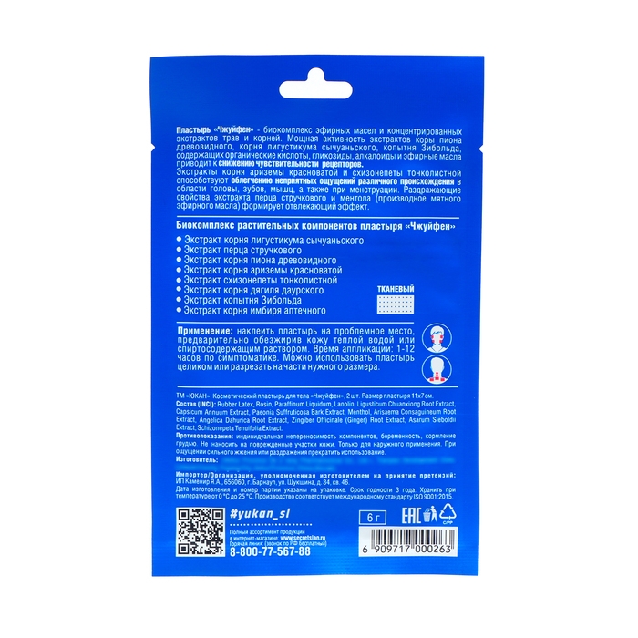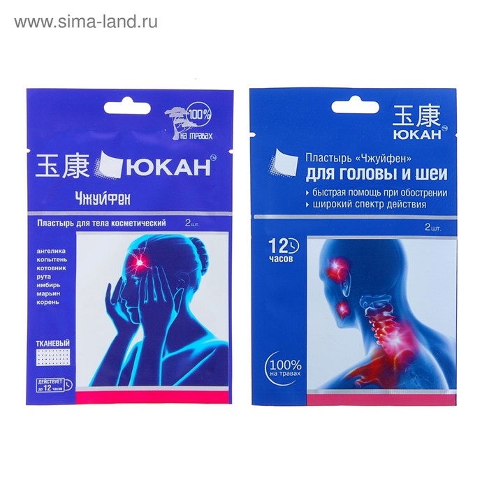Пластырь "Юкан - Чжуйфен", обезболивающий, тканевый, для головы и шеи, 2 шт