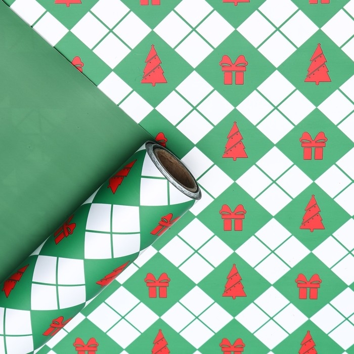 Пленка для цветов, "Новогодний калейдоскоп", зелёная 56см*10м