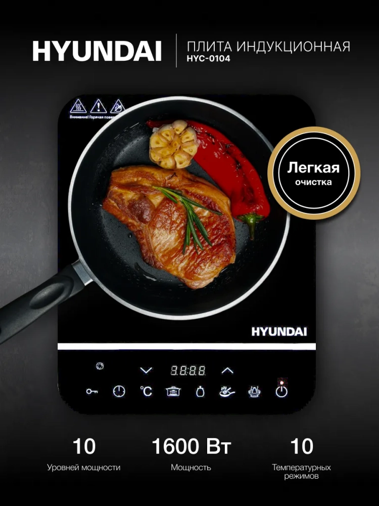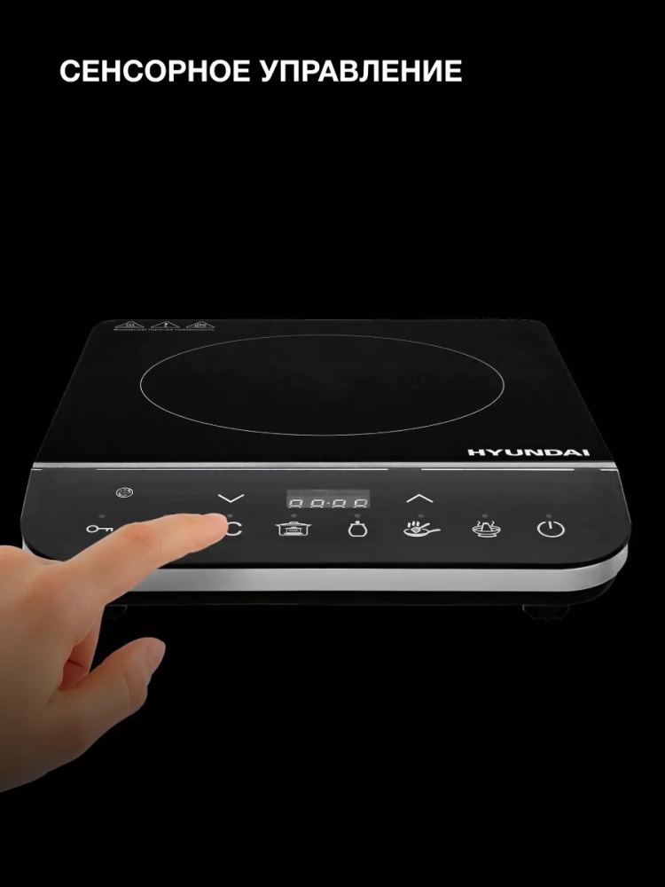 Плита Индукционная Hyundai HYC-0104 черный, поверхность стеклокерамика, индукционных конфорок: 1, сенсорное управление
