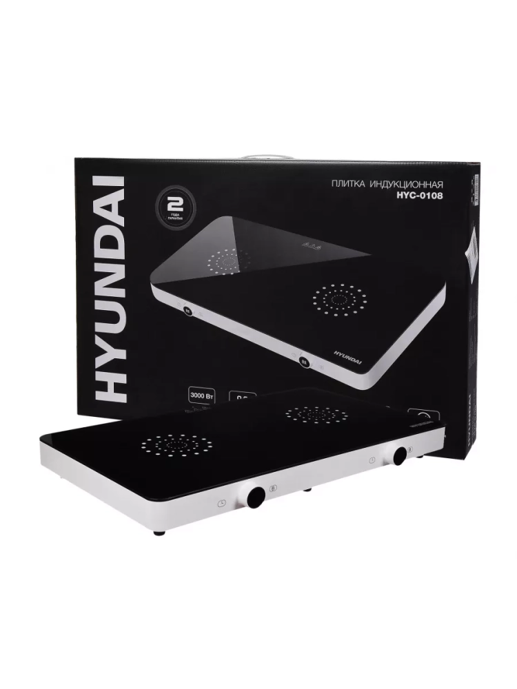 Плита Индукционная Hyundai HYC-0108 белый, поверхность стеклокерамика, индукционных конфорок: 2, сенсорное управление