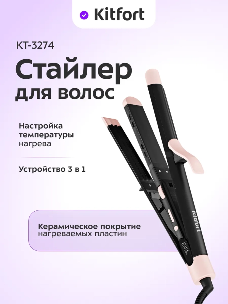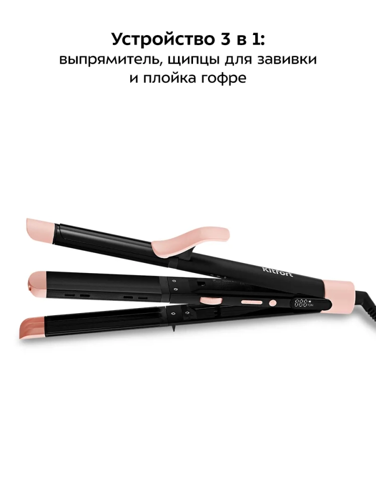Плойка для волос «3 в 1» Kitfort КТ-3274 позволит выпрямить волосы, уложить их красивыми волнами, придать текстуру волосам или создать прикорневой объем с помощью пластин с поверхностью гофре. Керамическое покрытие нагреваемых пластин делает волосы блестящими, а также снимает статическое электричество.