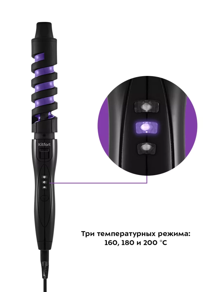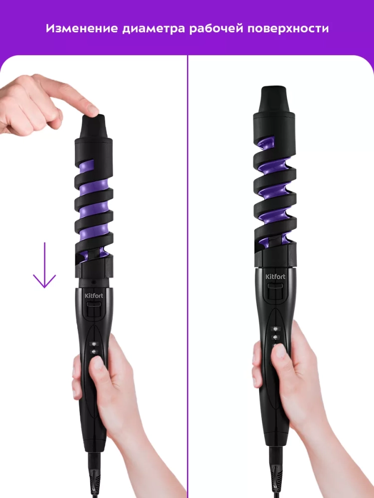 Плойка для волос Kitfort KT-3265 позволит легко и быстро сделать красивые локоны. Диаметр рабочей поверхности плойки можно регулировать, поэтому вы сможете делать разную прическу: более мелкие или более крупные кудри. Форма плойки позволяет укладывать локон по спирали, что облегчает процесс создания кудрей и позволяет делать их одинаковыми по толщине.