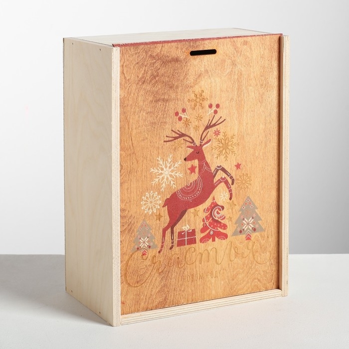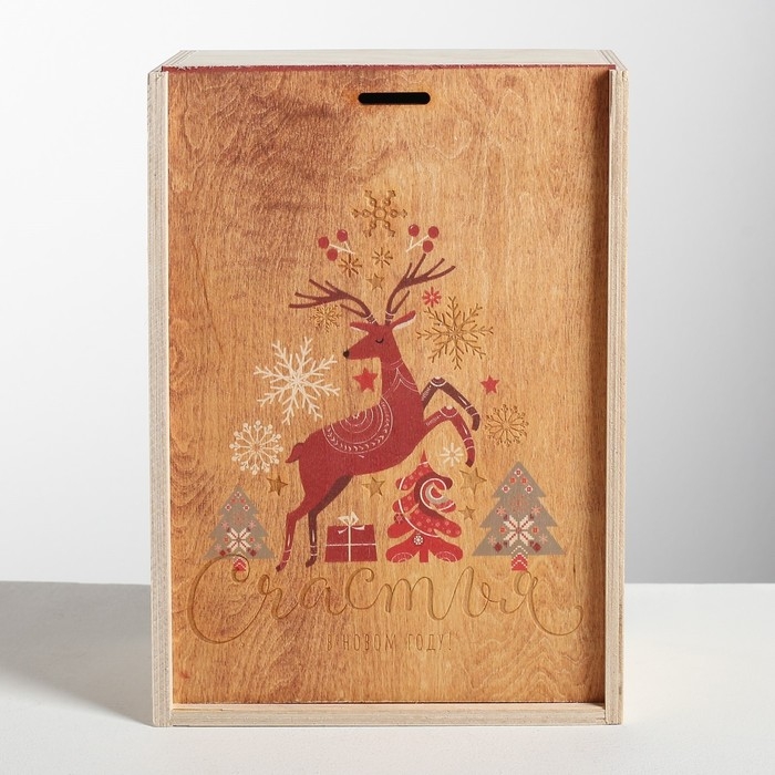 Подарочная коробка - ящик новогодний «Счастья и любви в Новом Году», деревянный 20 × 30 × 12 см