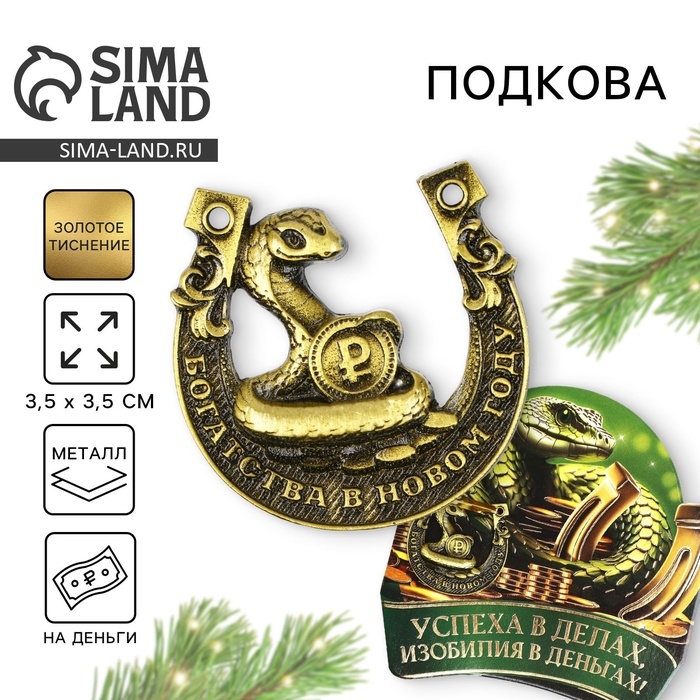 Подкова новогодняя мини «Новый год: Успеха в деньгах», 7 х 10 см