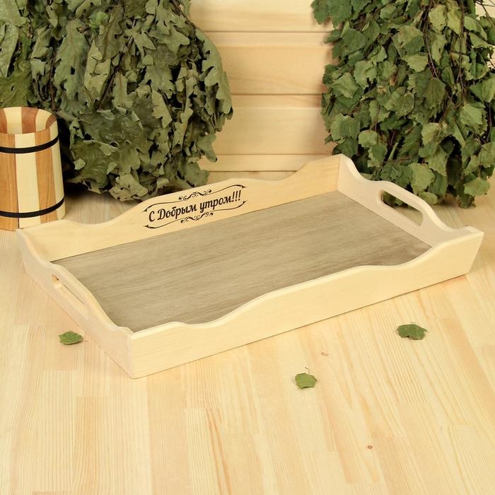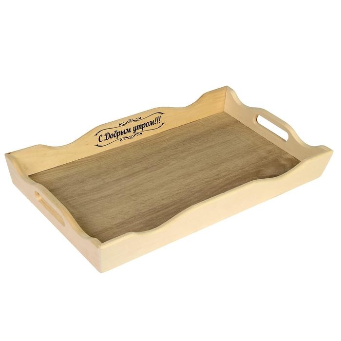 Поднос деревянный фигурный для завтрака "С Добрым утром!" цвет орех сонома, ХДФ, МАССИВ