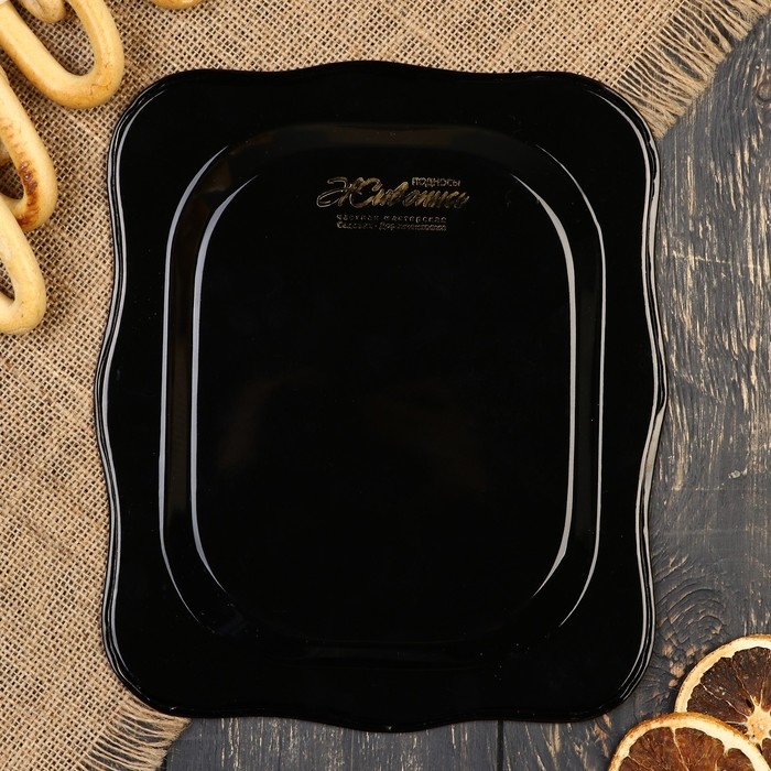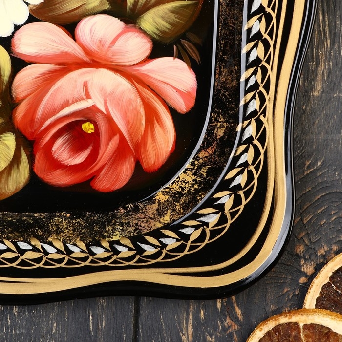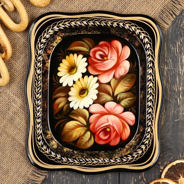 Поднос жостовский "Розы", черный, с авторской росписью, 24х20 см