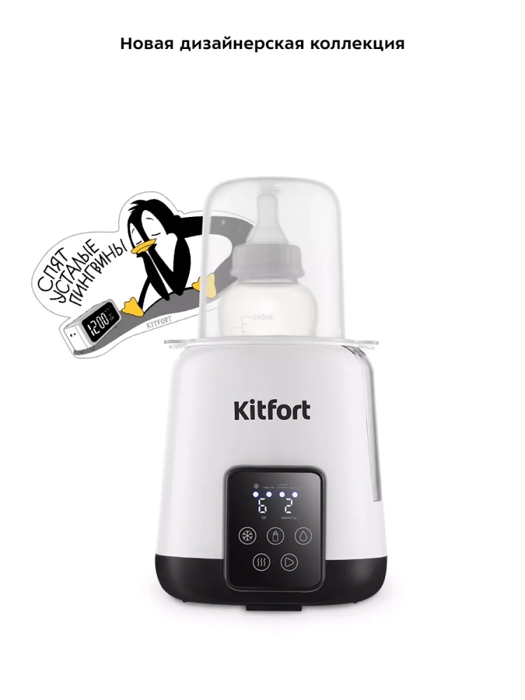 В подогревателе бутылочек Kitfort КТ-2331 можно разогреть детское питание или молоко и простерилизовать мелкие детские предметы, такие как соски, пустышки и прочее. В приборе можно разогреть детское питание не только комнатной температуры, но и холодное (5 °С).