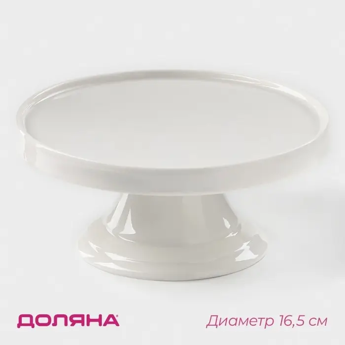 Подставка для тортов и десертов фарфоровая Доляна «Глория», d=16,5 см, цвет белый