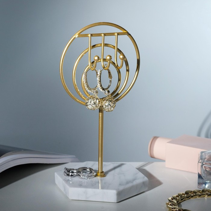 Подставка для украшений «Круг с крючками» h=19, основа 10, цвет золото