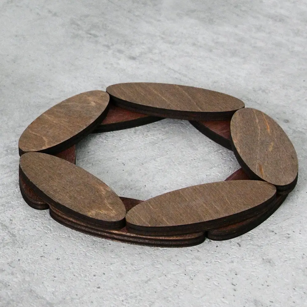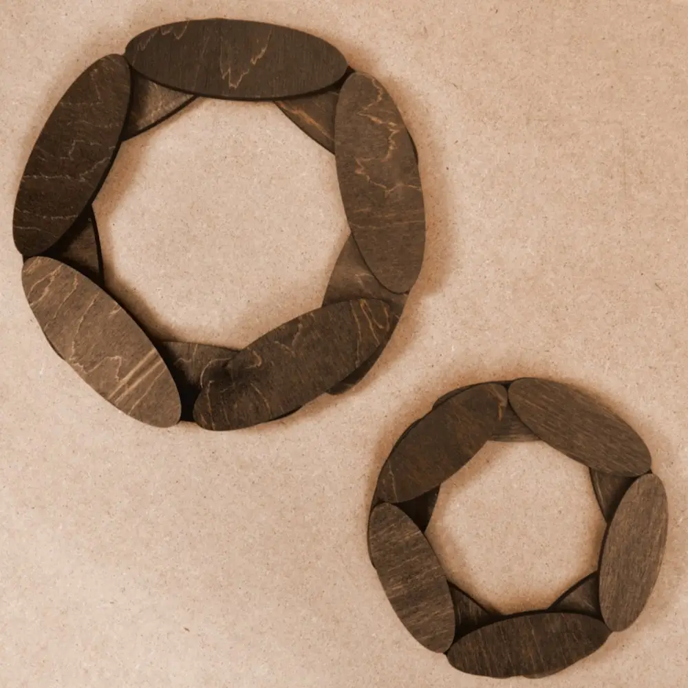 Изготовлено: деревянная фанера (береза). Диаметры 15 и 20,5 см, толщина 1 см.