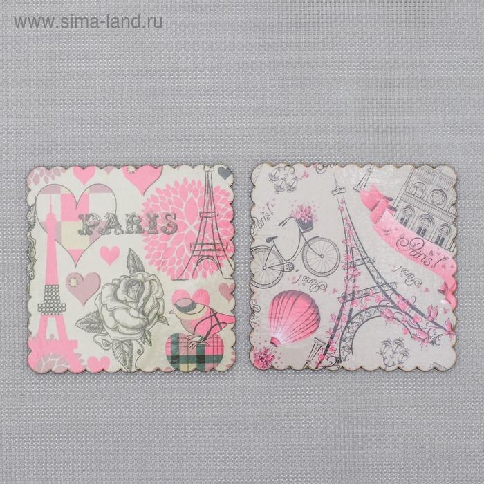 Подставка под кружку Доляна Paris, 2 шт, 9,5 х 9,5, деревянная