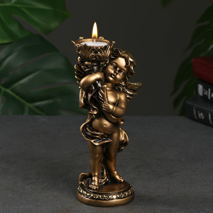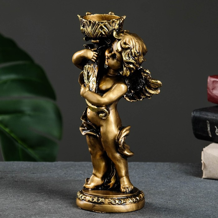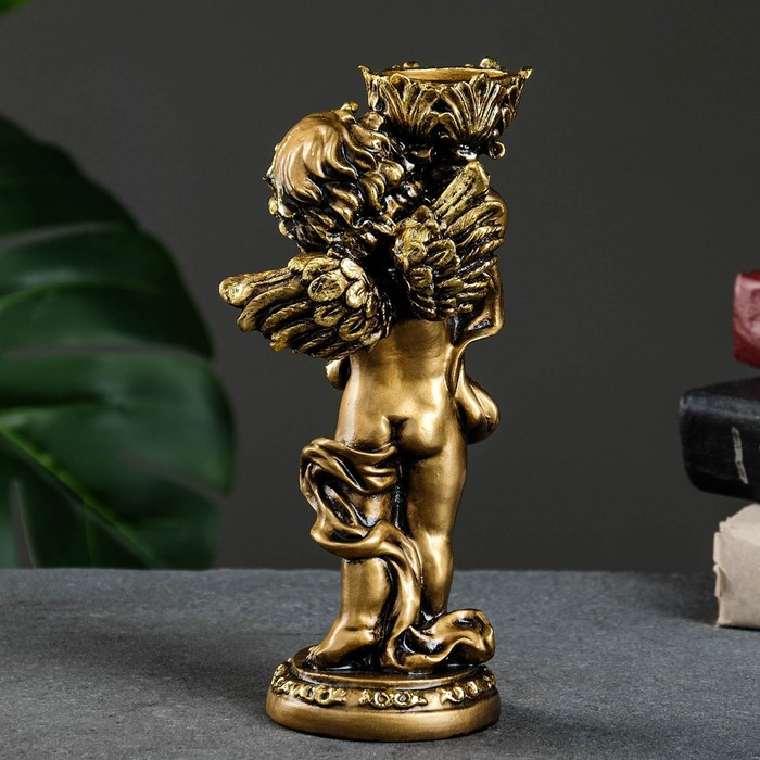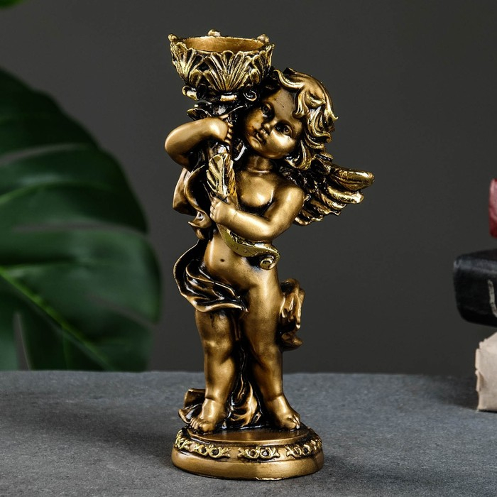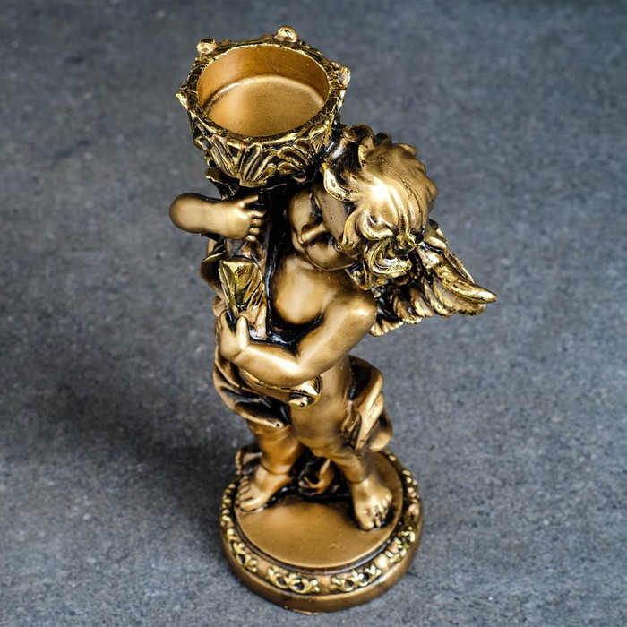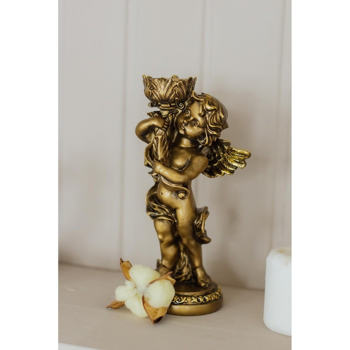Подсвечник "Ангелочек" в правой руке, золото, 14х8х22 см, для свечи d=4 см