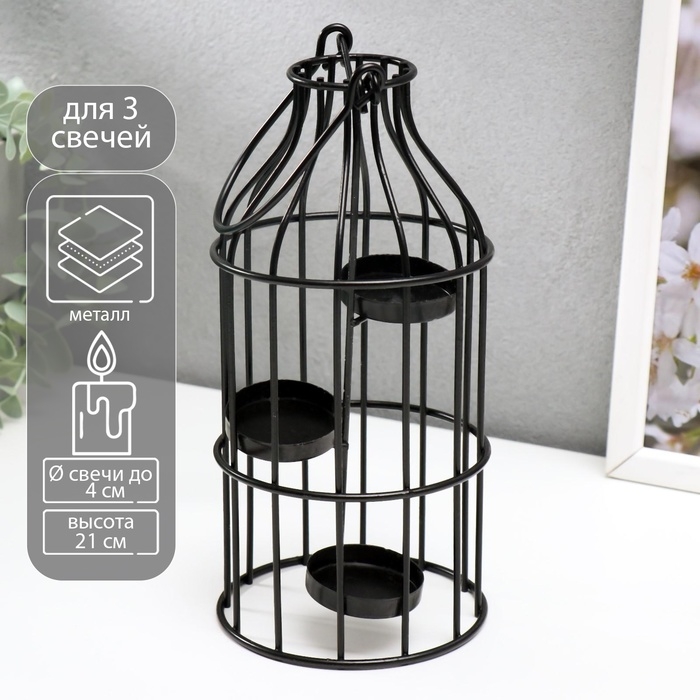 Подсвечник металл 3 свечи "Бутыль" чёрный 21х10х10 см