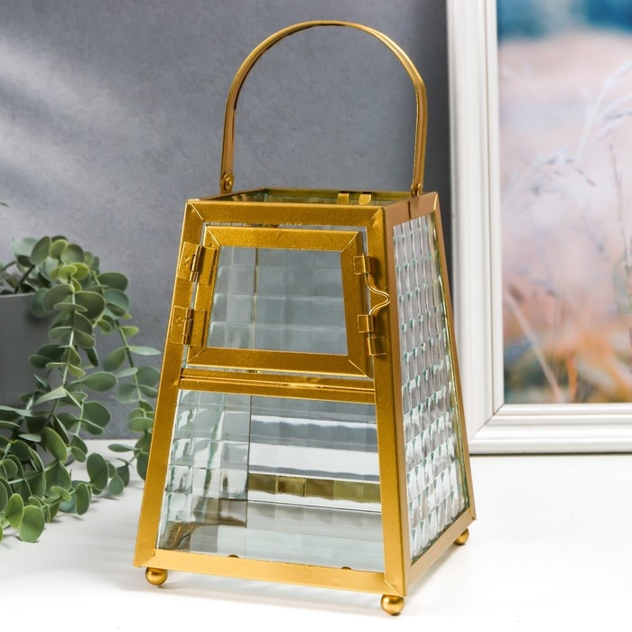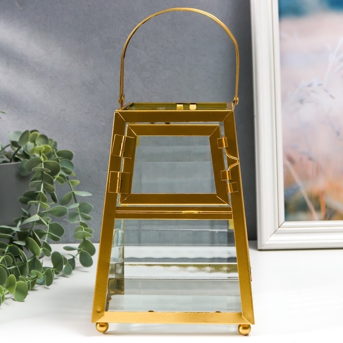 Подсвечник металл "Грани с витражными стёклами" золото 15х14.5х21 см