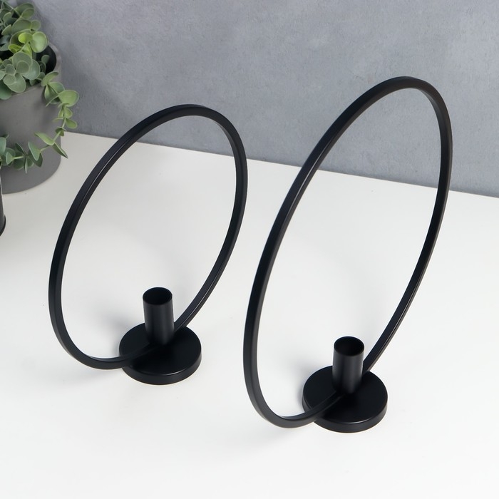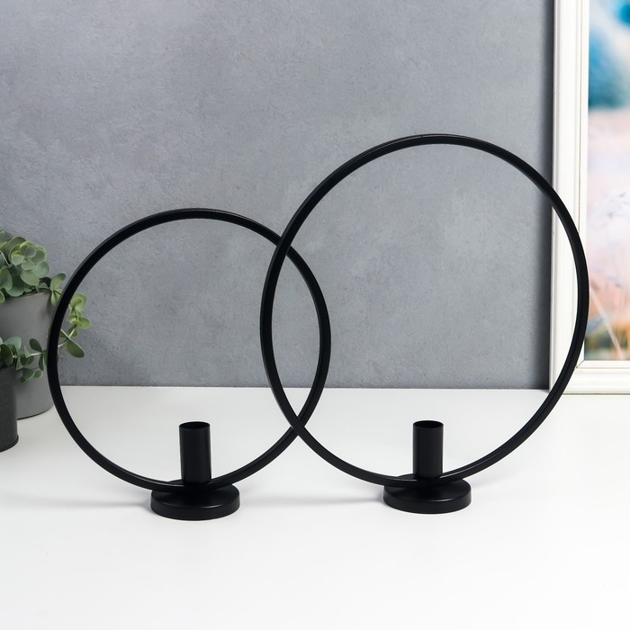 Подсвечник металл "Лофт. Круги" чёрный набор 2 шт 23х23х7 29х29х7 см