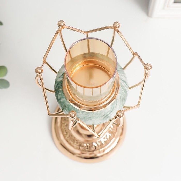 Подсвечник металл на 1 свечу "Бутон. Бело-зелёный мрамор" золото 29х11х11 см