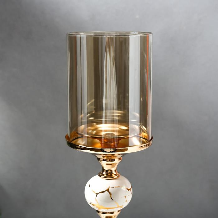 Подсвечник металл на 1 свечу "Мраморные шары с золотом" 41,5х11,5х11,5 см