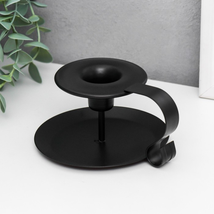 Подсвечник металл на 1 свечу с ручкой "Виток" чёрный 5,5х10,5х13,2 см