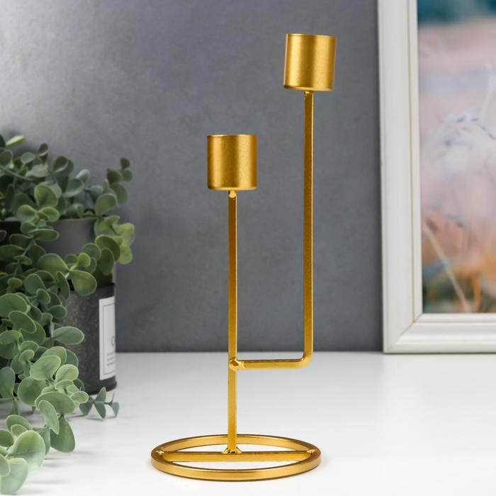 Подсвечник металл на 2 свечи "Высота" золото 23,5х9,5х9,5 см