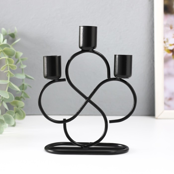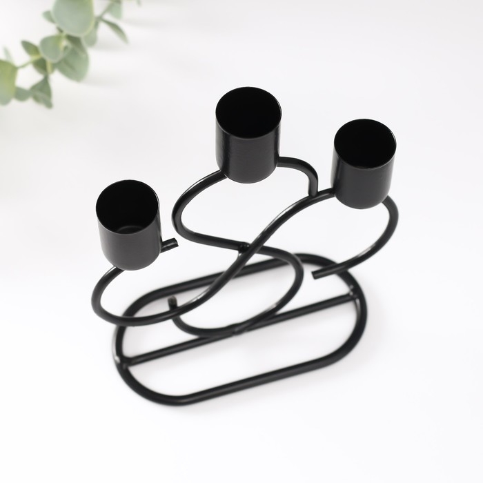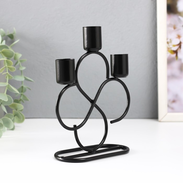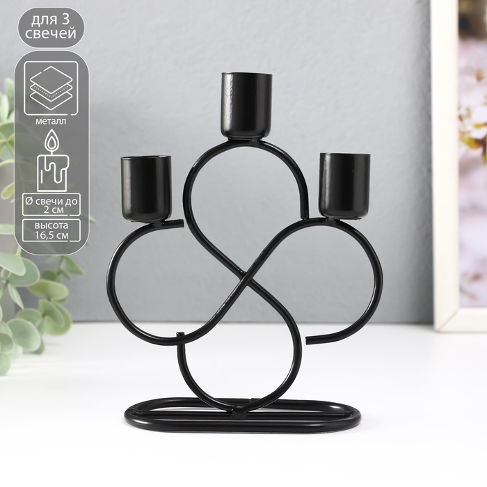 Подсвечник металл на 3 свечи "Завитки" d=2 см чёрный 14х6х16,5 см