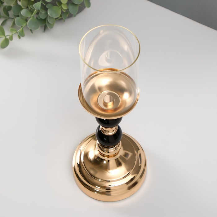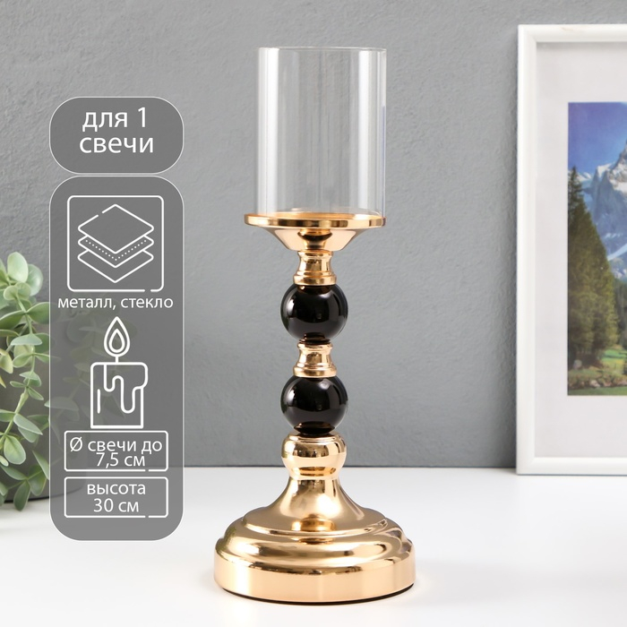 Подсвечник металл, стекло на 1 свечу "Чёрные шарики" чёрный с золотом 30х10х10 см