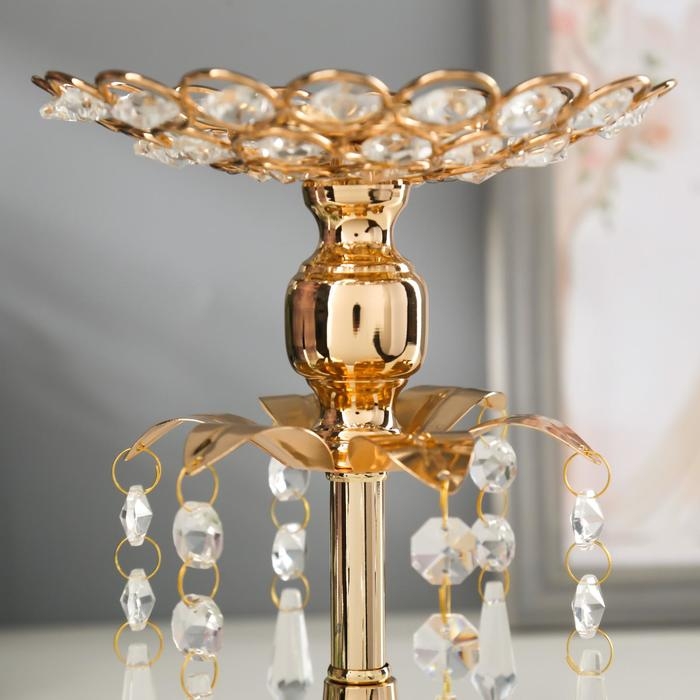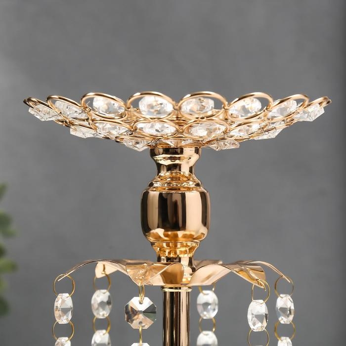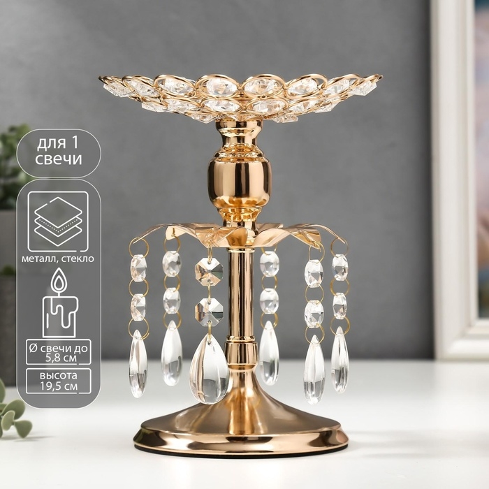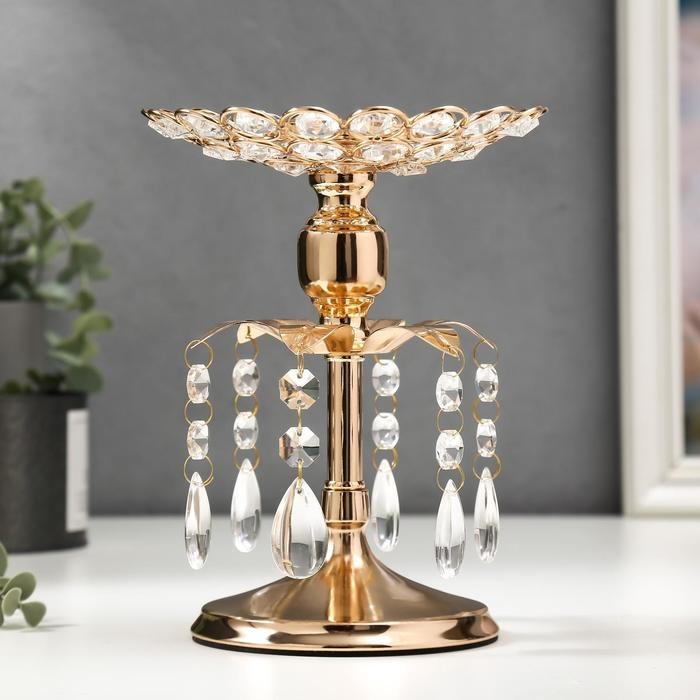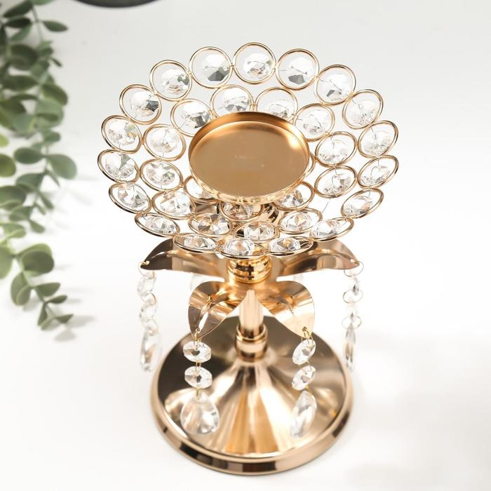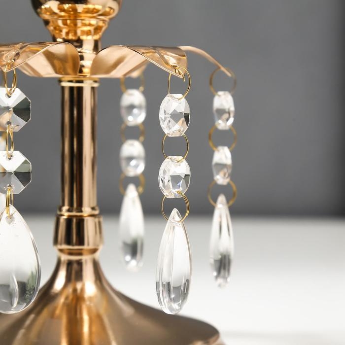 Подсвечник металл, стекло на 1 свечу "Хрустальные подвески" золото 19,5х14,8х14,8 см