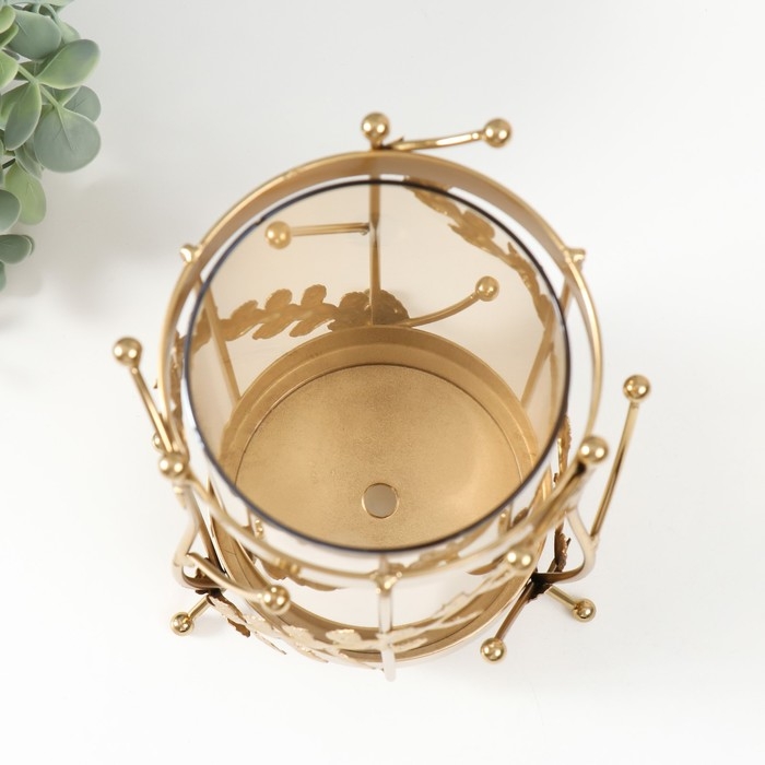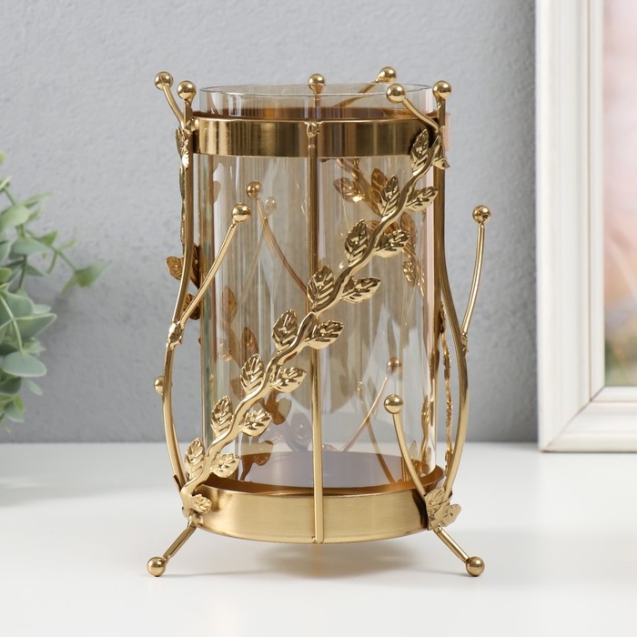 Подсвечник металл, стекло на 1 свечу "Веточки с шариками" d=10 см золото 20 см