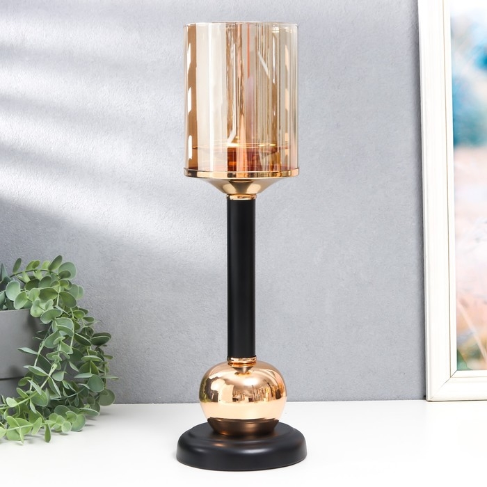 Подсвечник металл, стекло на 1 свечу "Жако" d-8,5 см, золото 11,5х11,5х38,5 см