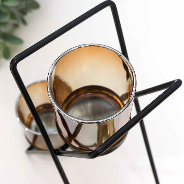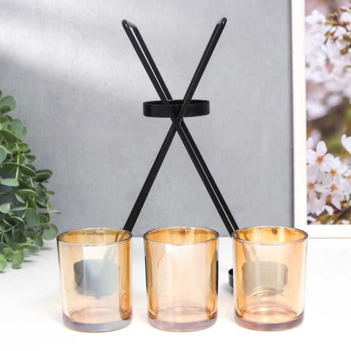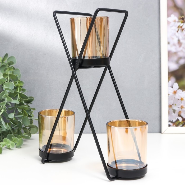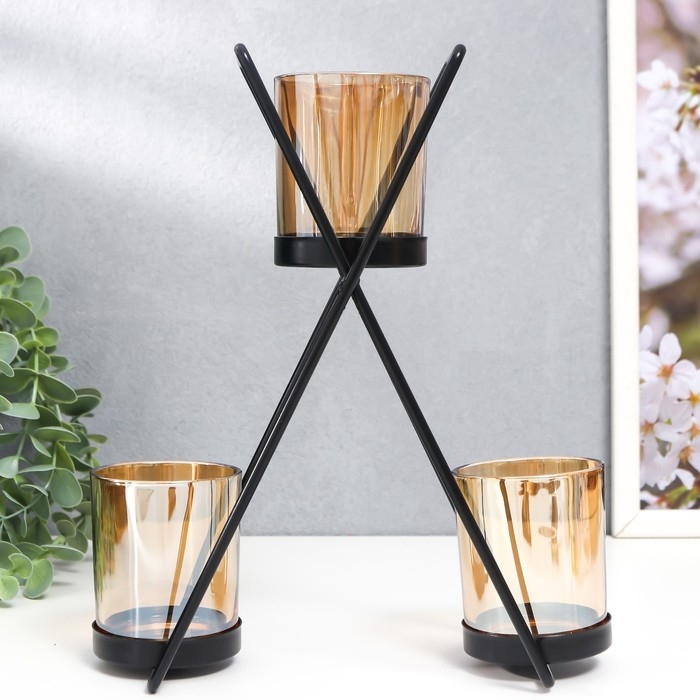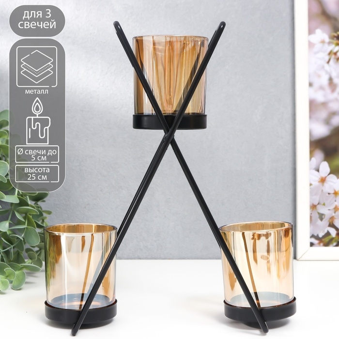 Подсвечник металл, стекло на 3 свечи "Гарна" d-5 см, чёрный 9х21х25 см
