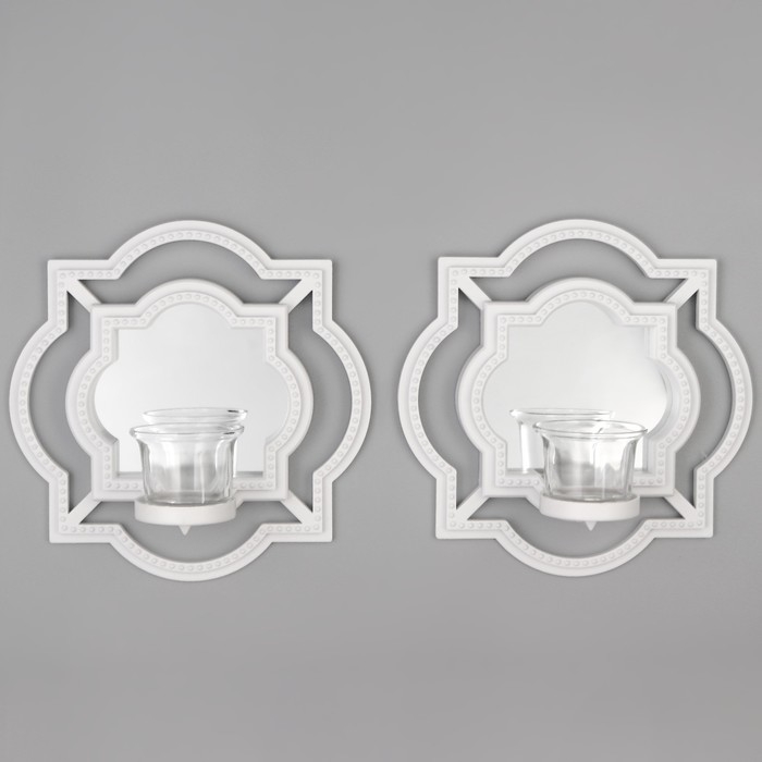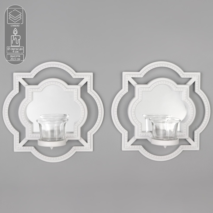 Подсвечник настенный стекло на 1 свечу "Отражение" набор 2 шт d-4 см белая 8х20х20,5 см