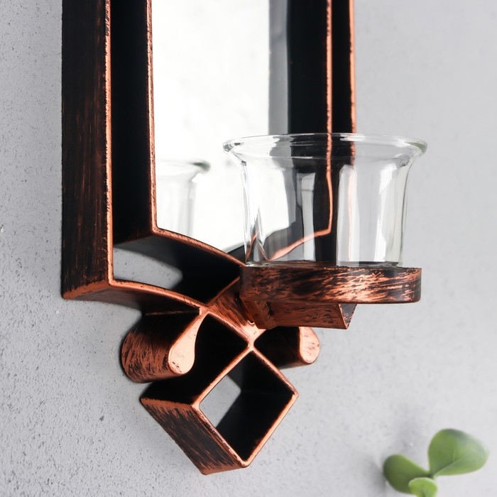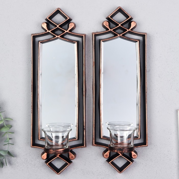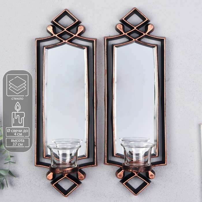 Подсвечник пластик, стекло на 1 свечу "Зеркальный свет" н-р 2 шт d-4 см бронза 8х11,5х37 см 906887