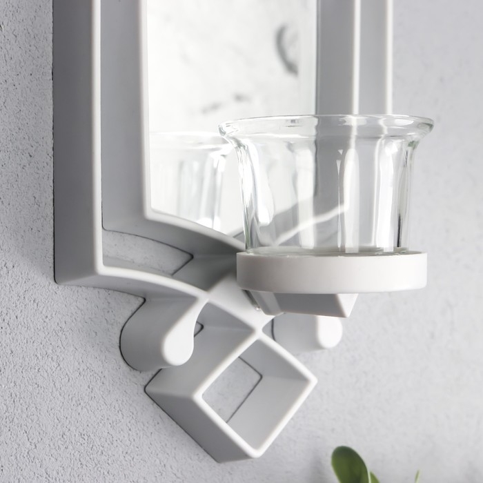 Подсвечник пластик, стекло на 1 свечу "Зеркальный свет" набор 2 шт d-4 см белая 8х11,5х37 см 90688