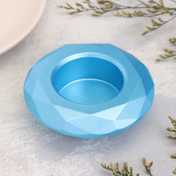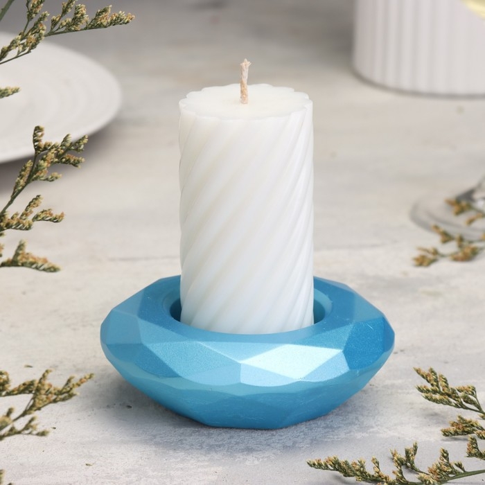 Подсвечник "Полноторие" из гипса с гранями большой, 10,5х3см,голубой
