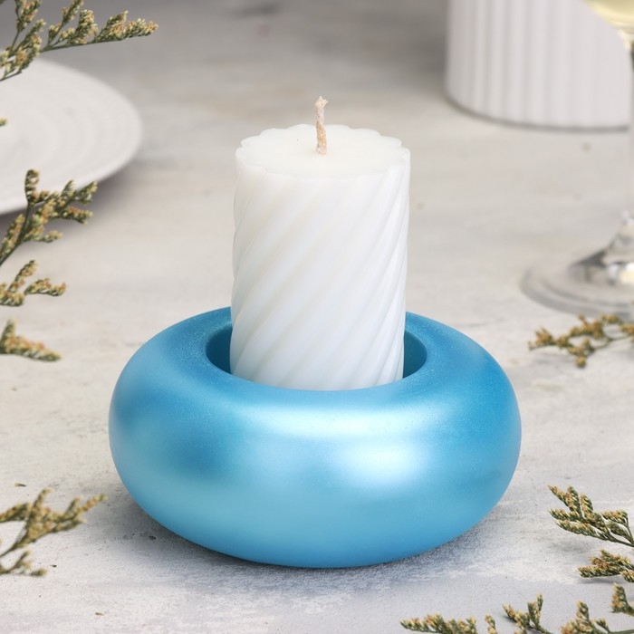 Подсвечник "Полноторие. Мрамор" из гипса большой, 11х5см,голубой