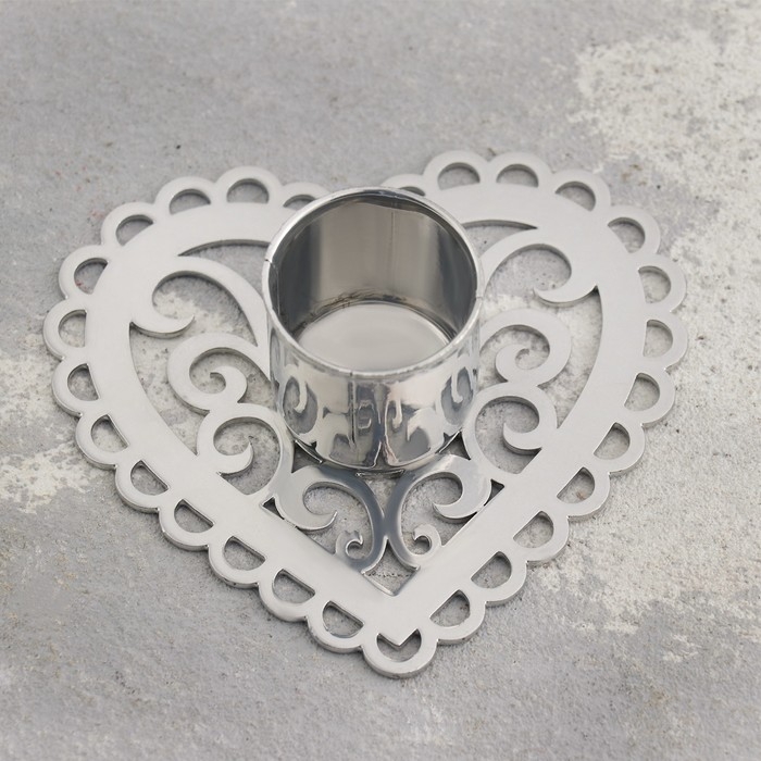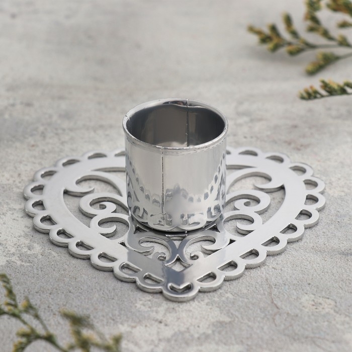 Подсвечник "Сердечко-кружево" металл на одну свечу, 7,8х2,7 см, хром