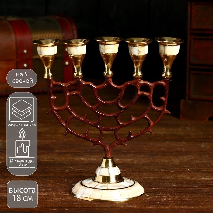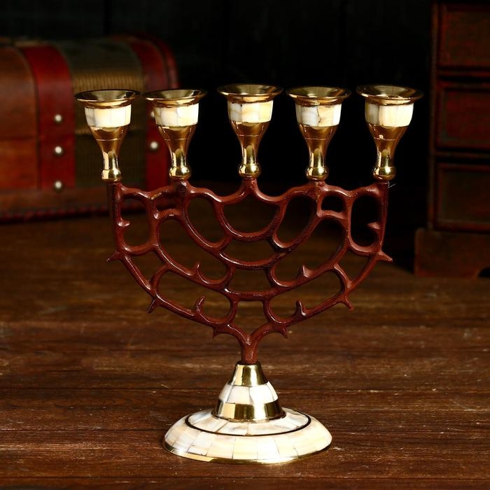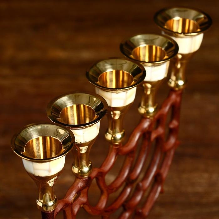 Подсвечник "Шариф" на 5 свечей, латунь, перламутр 20х9,5х19 см