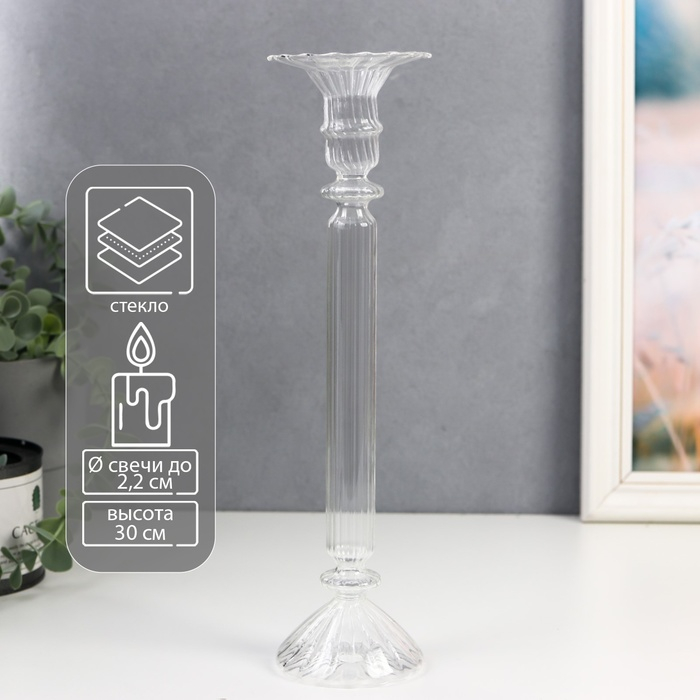 Подсвечник стекло на 1 свечу "Аверон" прозрачный 30х7,5х7,5 см